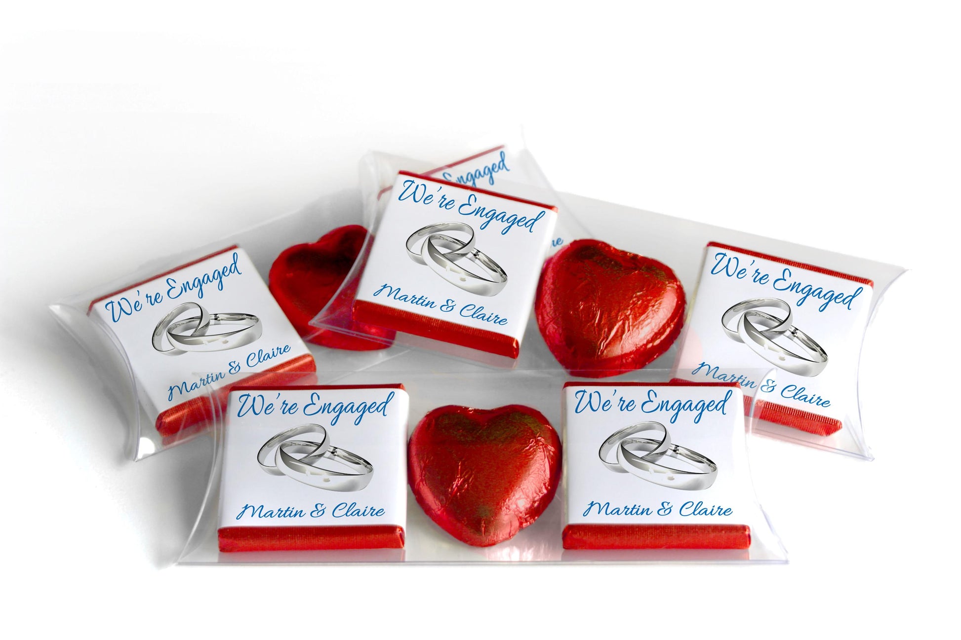 Personalised Engaged Favours – Custom Chocolate Squares, Chocolate Bars & Love Heart Sweets and so much more