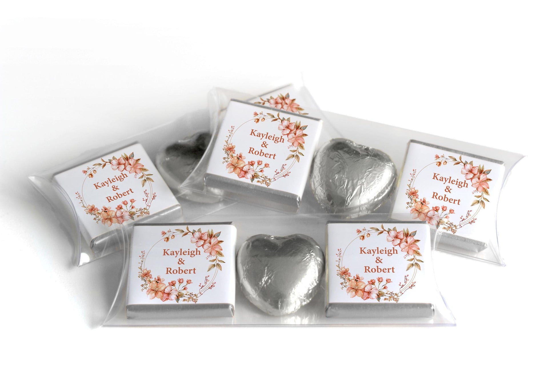 2 Choc Heart Trio Floral Wedding Chocolates – Personalized Chocolate for Wedding Favors
