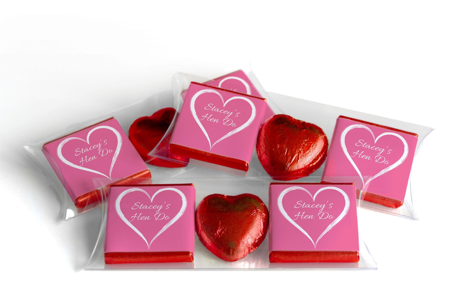 Personalised Hen Do Favours – Custom Chocolate Squares, Chocolate Bars & Love Heart Sweets and so much more