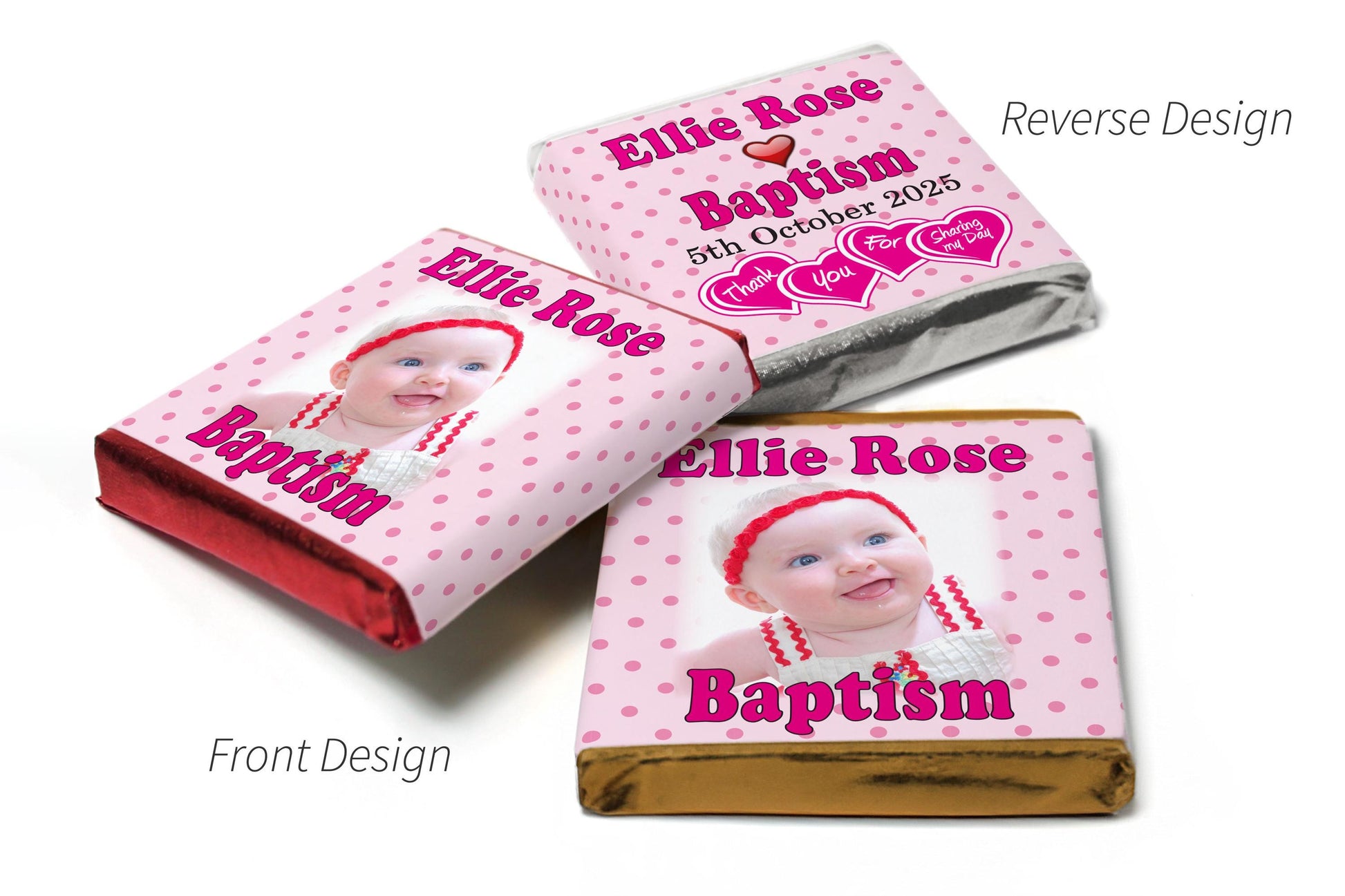 Personalised Baptism Favours – Custom Chocolate Squares, Chocolate Bars & Love Heart Sweets and so much more