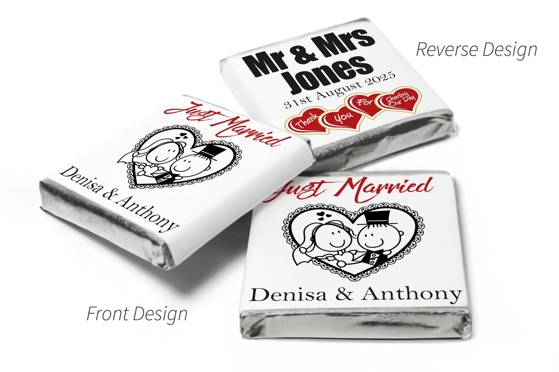 Personalised Wedding Favours – Custom Chocolate Squares, Chocolate Bars & Love Heart Sweets and so much more
