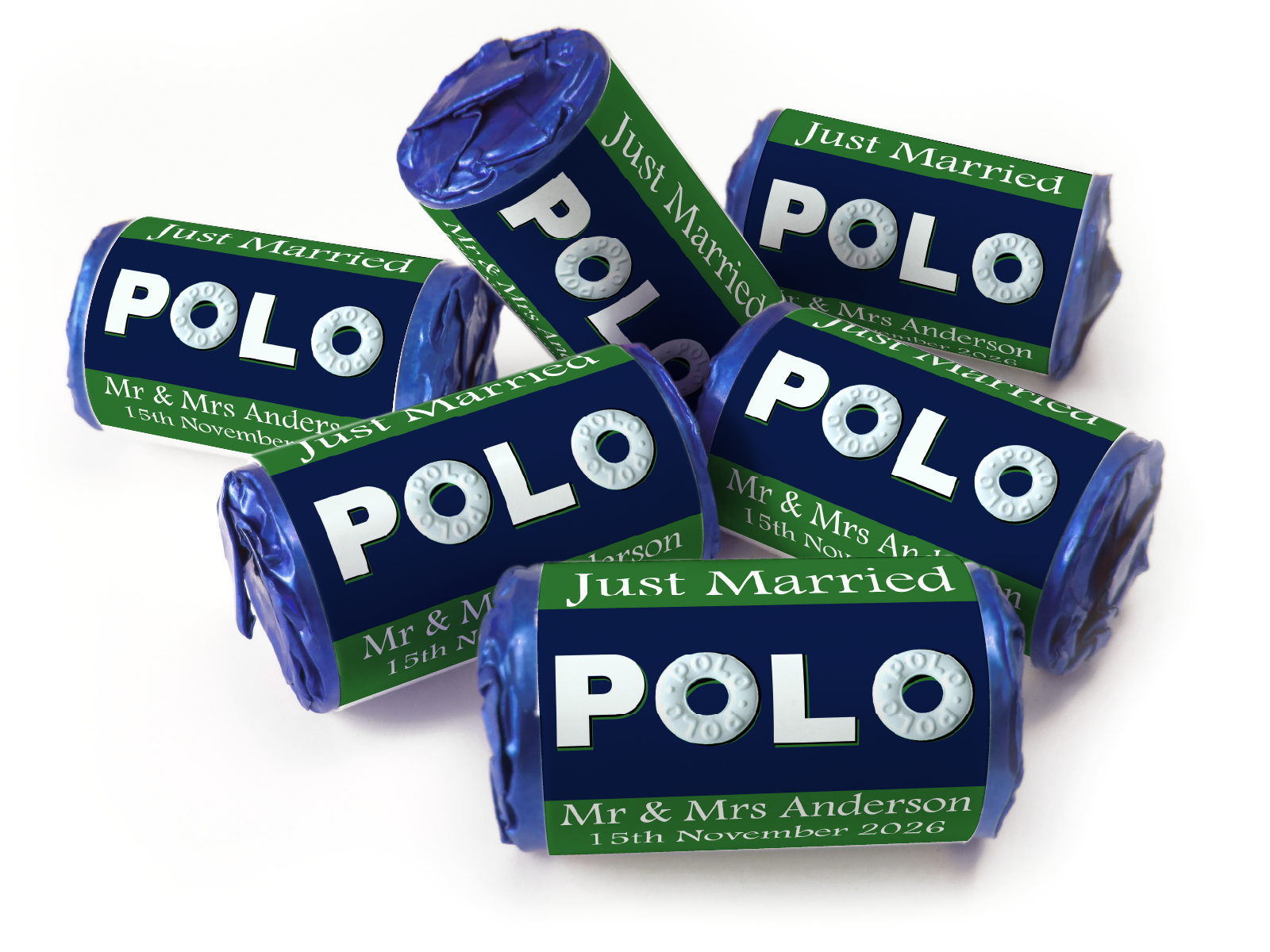Wedding Sweets - Personalised Wedding Favours - Mini Rolls - Polo Mints, Foil Choices - V4